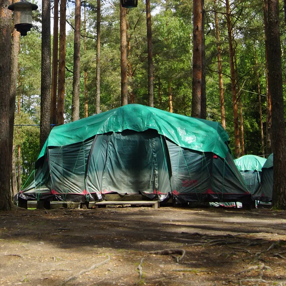Кемпинг «Рыжий Лис» предлагает размещение в комфортной 4-х местной палатке кемпинга или же размещение со своей палаткой в самом сердце соснового леса на берегу Вилейского водохранилища: